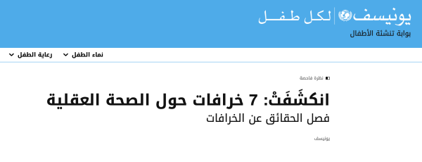 هذا المقال من اليونيسف يكشف سبع مفاهيم شائعة خاطئة حول الصحة النفسية، مثل الاعتقاد بأن ما من شيء يمكن فعله لحماية الناس من المعاناة من اعتلالات الصحة العقلية. يوضّح أن دحض هذه التصوّرات الخاطئة يمكن أن يساعد في كسر الوصم وخلق ثقافة تشجّع الناس من أي عمر على طلب الدعم عند الحاجة. يهدف المقال إلى تصحيح هذه المفاهيم، تعزيز الوعي، وتشجيع التعامل المفتوح والداعم مع الصحة النفسية.