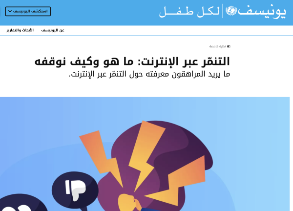 التنمّر عبر الإنترنت هو شكل من أشكال التنمّر يتم باستخدام التقنيات الرقمية، وقد يحدث عبر وسائل التواصل الاجتماعي، منصات التراسل، الألعاب الإلكترونية، أو الهواتف الخلوية. ويُعرَّف بأنه سلوك متكرر يهدف إلى تخويف الأشخاص المستهدفين أو إغضابهم أو التشهير بهم. يقدّم هذا المقال من اليونيسف معلومات عملية وإجابات عن أسئلة شائعة حول كيفية التعامل مع التنمّر عبر الإنترنت، ويجمع نصائح خبراء المنظمة إلى جانب إرشادات من شركات التطبيقات والألعاب مثل فيسبوك، إنستغرام، روبلوكس، سناب شات، ثريدز، تيك توك، وإكس، لمساعدة الأهالي والمراهقين على تعزيز الأمان الرقمي والتصدي لهذا السلوك المؤذي.