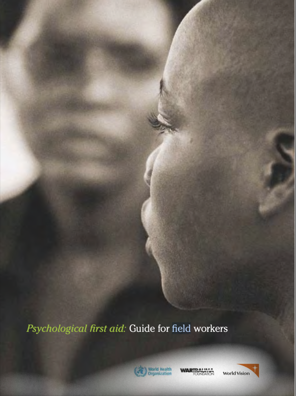 This is a guidance document intended for those in a position to help others who have experienced extremely distressing or crisis events. Psychological First Aid (PFA) offers humane, supportive, and practical help while respecting dignity, culture, and personal abilities. It outlines how to respond in the immediate aftermath of trauma, including how to establish safety, comfort, engage, listen, assess needs, provide practical assistance, connect people with social supports, offer information about coping, and link with further help when needed. The guide is endorsed by international agencies and reflects consensus on best practices in crisis response.