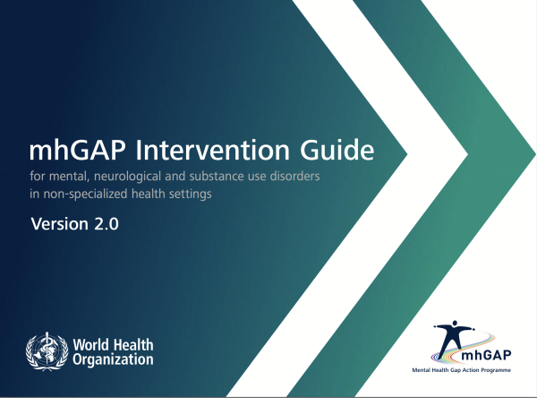 يُعَدّ دليل التدخُّل mhGAP (mhGAP-IG) للاضطرابات النفسية والعصبية واضطرابات تعاطي المواد أداة تقنية طوّرتها منظمة الصحة العالمية لدعم تنفيذ برنامج mhGAP. وقد تم تطويره من خلال مراجعة منهجية للأدلة تلتها عملية تشاورية ومشاركة دولية. يقدّم الدليل إدارة متكاملة للحالات ذات الأولوية باستخدام بروتوكولات واضحة لاتخاذ القرارات السريرية. وتشمل هذه الحالات: الاكتئاب، الفصام، الاضطراب ثنائي القطب، الصرع، الاضطرابات النمائية والسلوكية لدى الأطفال والمراهقين، الخرف، اضطرابات تعاطي الكحول، اضطرابات تعاطي المخدرات، الانتحار/إيذاء النفس، وغيرها من الشكاوى الانفعالية أو غير المفسّرة طبياً. يُعَدّ mhGAP-IG دليلاً نموذجياً قابلاً للتكييف وفق الاحتياجات الوطنية والمحلية، وموجهاً لمقدّمي الرعاية الصحية العاملين في أماكن الرعاية غير المختصّة.