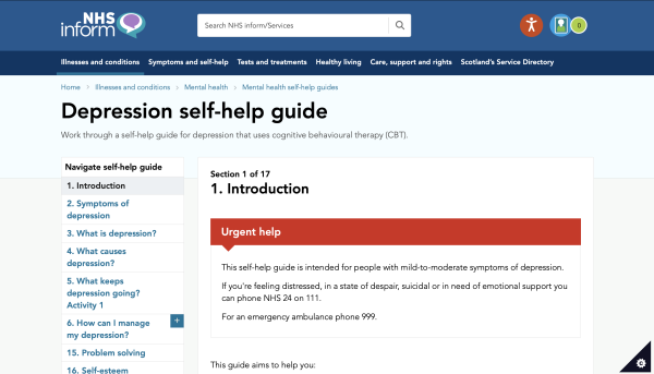 This guide works through a self-help programme based on Cognitive Behavioural Therapy (CBT), designed for people with mild-to-moderate depression. It describes what depression feels like—its symptoms, causes, and what keeps it going—and offers tools to challenge unhelpful thinking, solve problems, and build self-esteem. Sections include managing symptoms, identifying negative automatic thoughts and patterns, practising problem solving, and planning “next steps” to keep progress going.