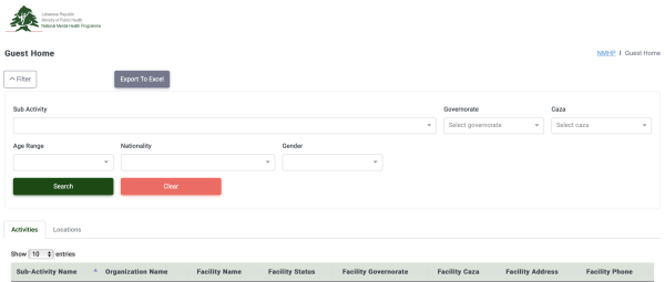 An online platform providing a comprehensive mapping of mental health and psychosocial support (MHPSS) services in Lebanon. It serves as a tool for identifying and coordinating service providers nationwide and can be accessed through the National Mental Health Programme’s official website.