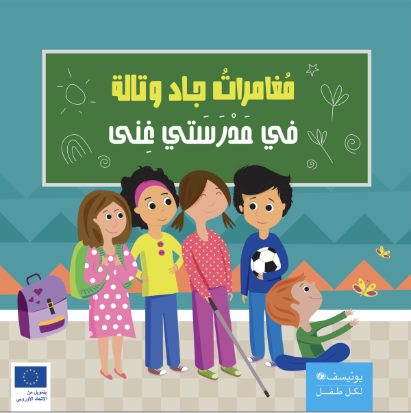 This is the fifth book in the “Adventures of Jad and Tala” series published by UNICEF Lebanon. It addresses the theme of an inclusive school environment, using the character Ghina to promote acceptance, diversity, and the inclusion of all children—especially those with disabilities—in a positive and encouraging educational context.
